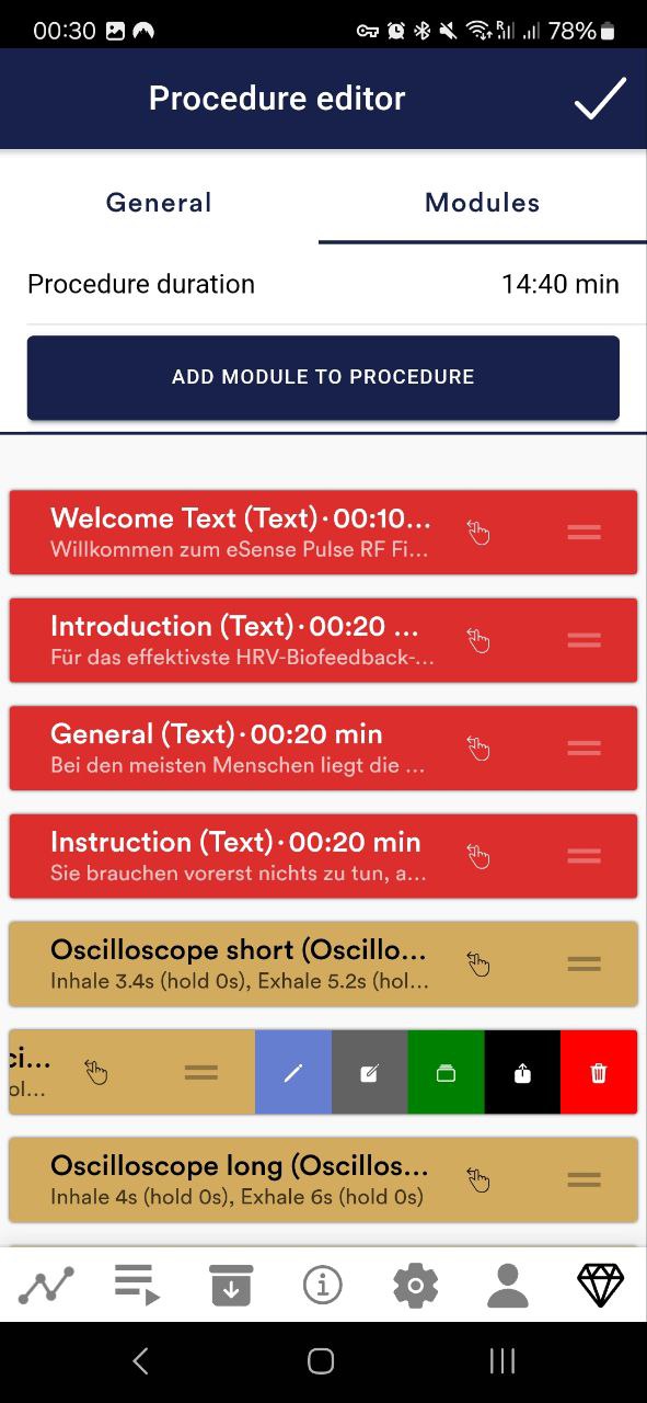 モジュールを左にスライドさせ、青い鉛筆マークをタップして編集します。